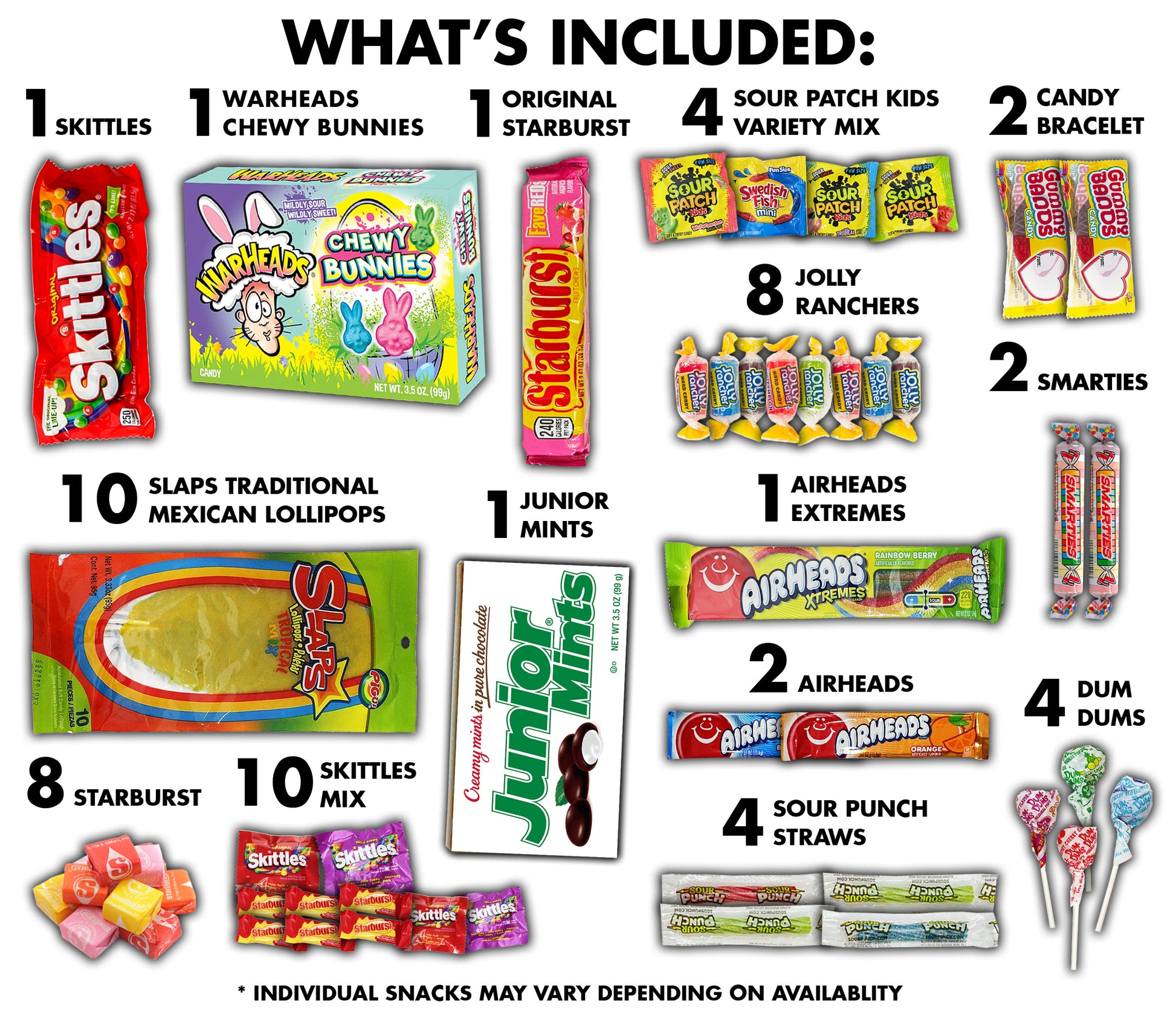 Bundle Includes: This is our 60 Pack assortment of the finest sweet and sour treats.