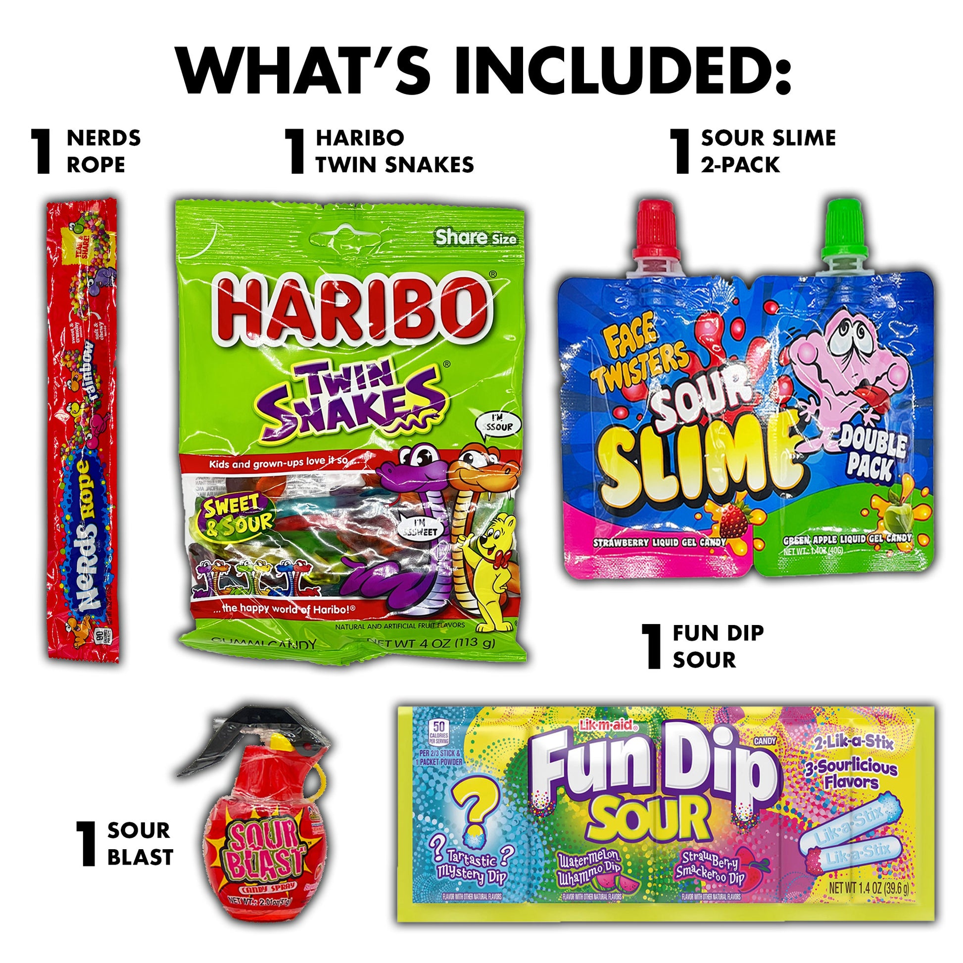 • Assortment of sour candy in a variety of fun and unique flavors